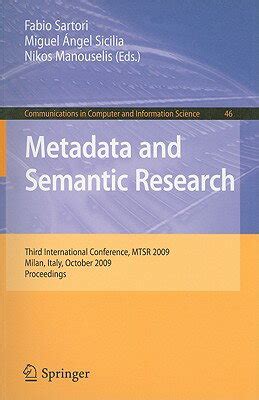 Read Metadata and Semantic Research Third International Conference Reader By Click Button. Metadata and Semantic Research Third International Conference it’s easy to recommend a new book category such as Novel, journal, comic, magazin, ect. You see it and you just know that the designer is also an author and understands the challenges involved with having a good book. You can easy klick for detailing book and you can read it online, even you can download it
